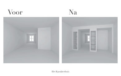 De interieurelementen en kleuren. Het meubilair maakt het af.